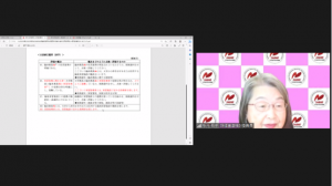 続いて、井上智子評価委員会委員長が『2024年度受審用 看護学教育評価ハンドブック』を用いて、評価プロセスや申請書類の作成方法について説明しました。