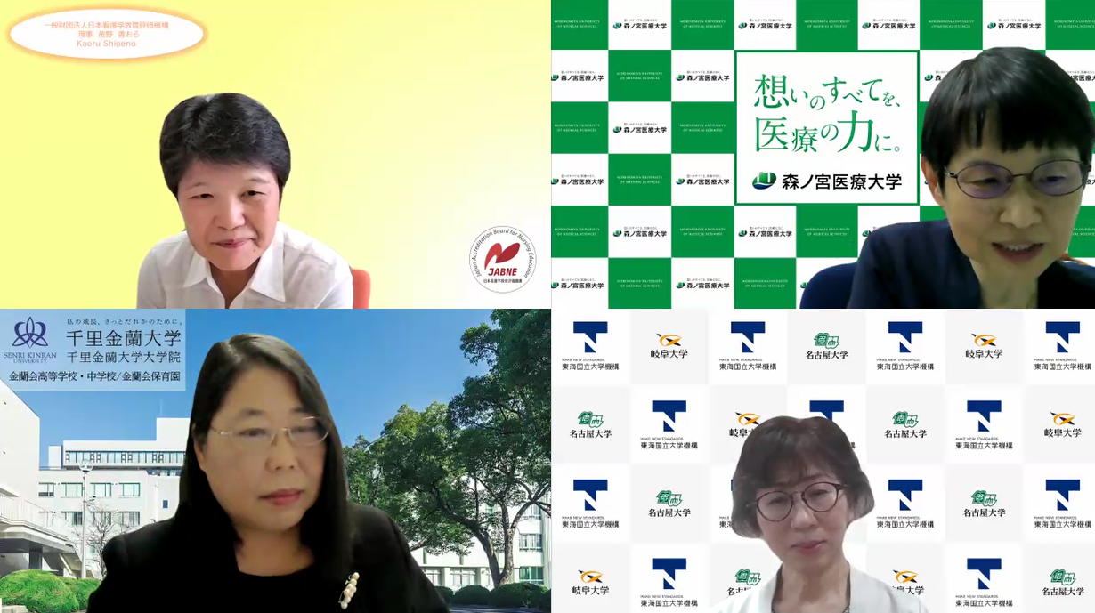第2部では、パネルディスカッション「受審後の教学マネジメントに関わる各大学の取り組み」をテーマに、森ノ宮医療大学看護学部(2021年度受審)の内田宏美学部長、千里金蘭大学看護学部(2022年度受審)の藤田倶子学部長、岐阜大学医学部看護学科(2022年度受審)の井關敦子学科長にご発表いただきました。受審を振り返り、受審に至るまでの苦労、学内の体制、受審結果から明確になった課題とその対応など、ありのままをお話しいただきました。